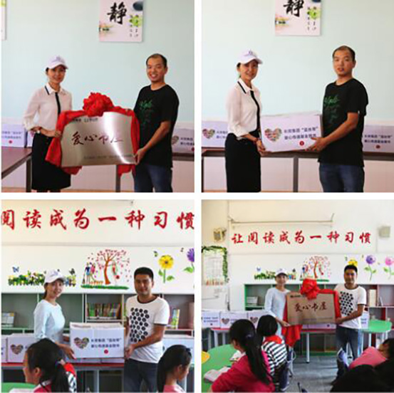 在愛心書屋掛牌啟用的同時,長房集團(tuán)藍(lán)絲帶愛心傳遞基金再次為兩所學(xué)校捐贈了價值六千余元的新書,精心挑選的一批小學(xué)生們喜愛的童話故事、文學(xué)名著、知識百科等課外讀物,進(jìn)一步充實(shí)了學(xué)生們的精神糧倉。長沙市青少年發(fā)展基金會副理事長胡朝軍、辦公室主任邱蓉、長房集團(tuán)團(tuán)委負(fù)責(zé)人、長房集團(tuán)志愿者與受贈學(xué)校領(lǐng)導(dǎo)、部分師生一同見證了愛心書屋的正式啟用。