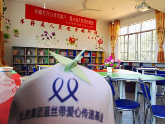 長房集團(tuán)藍(lán)絲帶愛心傳遞基金成立于2007年,由長沙市青少年發(fā)展基金為代為管理。歷年來開展了“小書包,大夢想”、“有愛,夢想才有翅膀”、“情牽抗戰(zhàn)老兵、心系山區(qū)學(xué)子”等一系列主題愛心公益活動,積極援建學(xué)校、修繕操場、捐贈課桌椅、文體用品,捐建圖書室等,援助學(xué)校20余所,受益學(xué)生近萬名,累計(jì)捐贈愛心助學(xué)物資160余萬元,直接資助省內(nèi)各大高校寒門學(xué)子63名。此外,在汶川地震后,為災(zāi)區(qū)募捐和捐獻(xiàn)共近200萬元。